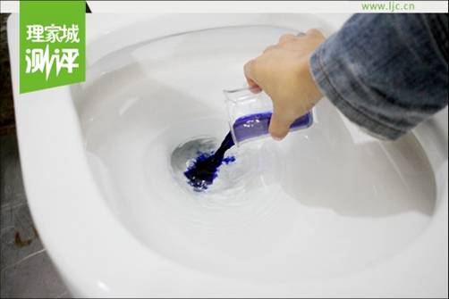 小編用紅墨水、藍(lán)墨水進(jìn)行測試,按下沖水鍵,紅藍(lán)顏色瞬間被沖走,釉面潔白如新。
