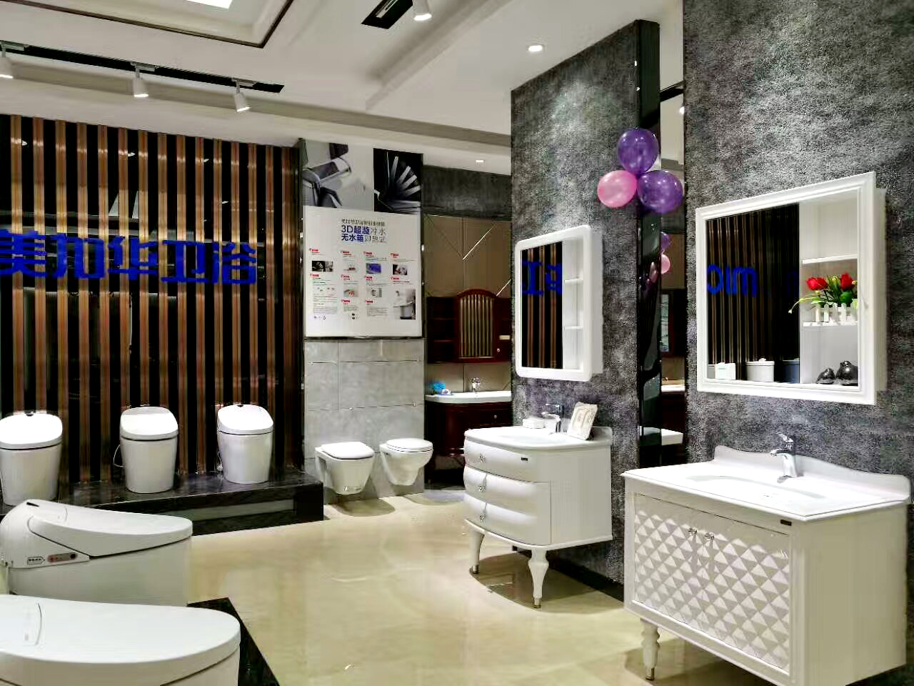據(jù)悉,美加華衛(wèi)浴佛山旗艦店總面積高達(dá)500m2,營銷產(chǎn)品除了浴室柜和坐便器兩大王牌外,還囊括了浴缸、微鉛龍頭、花灑、淋浴房、五金配件等多項(xiàng)高端產(chǎn)品,品類之多,令人目不暇接。其不僅成為美加華對外形象展示的重要窗口,同時(shí)也解決了產(chǎn)品銷售的便利性問題。
