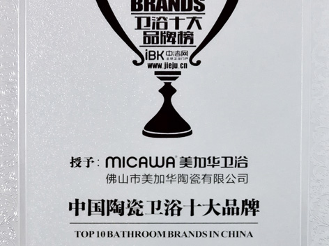 2016年12月1日,全球衛(wèi)浴門戶網(wǎng)站中潔網(wǎng)授予美加華衛(wèi)浴“中國陶瓷衛(wèi)浴十大品牌”榮譽。
