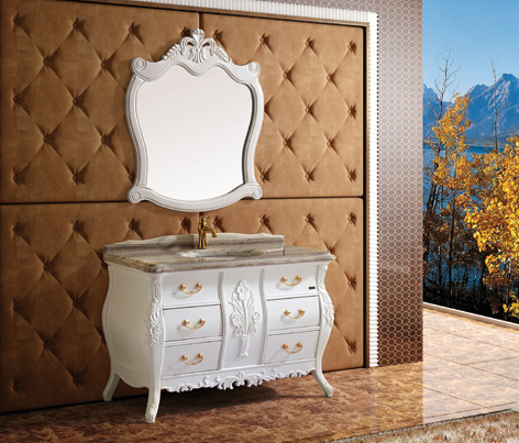 MFG-24實(shí)木仿古柜,采用泰國(guó)進(jìn)口橡木,配以水晶木紋白天然大理石臺(tái)面,以及圓弧形立體大理石臺(tái)下盆。純白色彩配以金色五金拉手,整體外觀凸現(xiàn)新一代田園風(fēng)格,產(chǎn)品游走于現(xiàn)代與復(fù)古之間,線條簡(jiǎn)約而不簡(jiǎn)單,品味低調(diào)而不失奢華。中間蘭花的雕刻修飾,經(jīng)由純實(shí)木手工打造,散發(fā)著強(qiáng)烈的鄉(xiāng)村田園風(fēng)情和野趣,讓那種輕松、不雕琢的感官占據(jù)冗繁的心靈,享受徹底的純凈的世界。